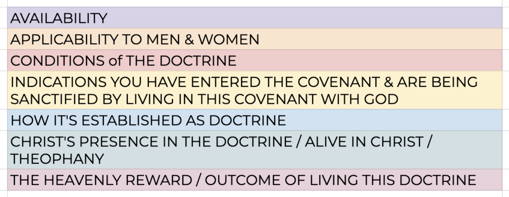 I have another spreadsheet for you, hoping to drive home the different natures of the true doctrine and the false doctrine. Knowing the true doctrine made the falsehoods so clear. This SPREADSHEET 2, (Eternal Life compared to Exaltation) compares the Way to Christ doctrine to the Exaltation teachings in 132 and from the pulpit.